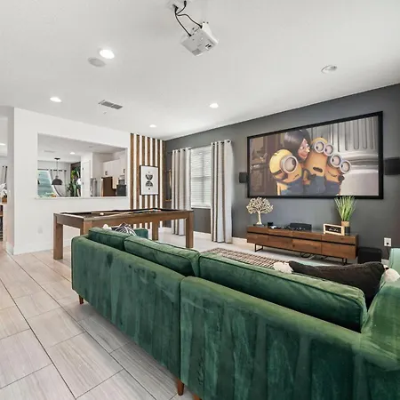 A Contemporary 6 Bdrm Home With Private Spa In Encore Orlando está localizada a cerca de 10 minutos andando de Clube de Golfe Mystic Dunes no Mystic Dunes Resort e dispõe de piscina privada, garantindo uma estadia relaxante.